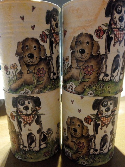 Hermosos diseños y versatilidad para estas latas realizadas en decoupage. Podés utilizarlas como macetas, lapiceros, portacosméticos, yerbera y azucarera, y otros usos más!