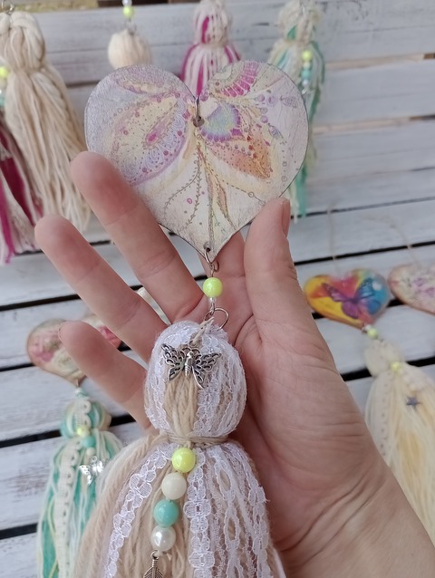 ¡Hermosos y decorativos! Los corazones colgantes son ideales para colgar en los picaportes de puertas, placares o como sujetador de cortinas. Diseño personalizado y a medida. Podés obsequiarlos como souvenir en eventos, cumpleaños, bautismos, casamientos. Pedí los tuyos!