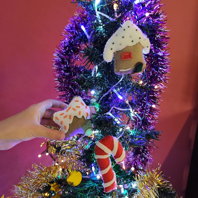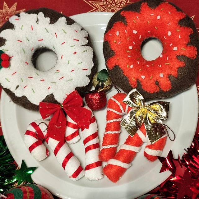 Un bastón navideño para colgar en el pinito y un adorable delantal 🎅